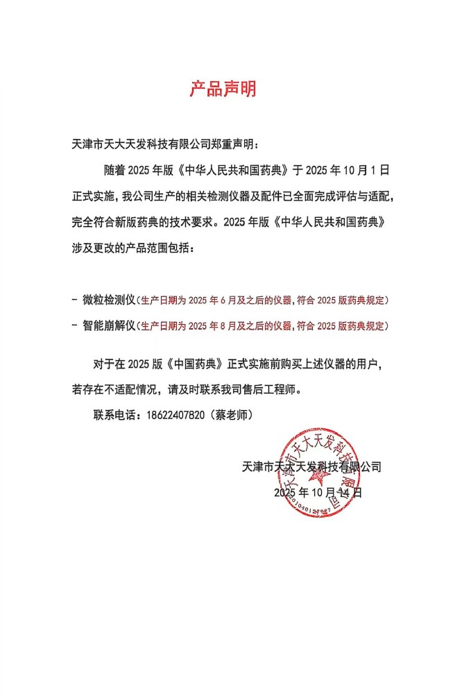 尊敬的各界朋友們: 歡迎您進(jìn)入天津市天大天發(fā)科技有限公司的網(wǎng)站進(jìn)行瀏覽,首先感謝各界朋友多年來(lái)對(duì)天大天發(fā)藥品檢測(cè)儀器和分析儀器的關(guān)心與支持! 天津市天大天發(fā)科技有限公司是通過(guò)ISO9001質(zhì)量管理體系認(rèn)證、ISO14001環(huán)境管理體系的認(rèn)證的高新技術(shù)企業(yè),是專(zhuān)業(yè)的藥檢儀器和分析儀器的制造廠(chǎng)商。 我們的產(chǎn)品包括藥品溶出儀系列、微粒檢測(cè)儀系列、內(nèi)毒素檢查儀系列等40余種產(chǎn)品,主要產(chǎn)品覆蓋了全國(guó)所有省區(qū),部分產(chǎn)品已進(jìn)入海外市場(chǎng)。公司在藥檢領(lǐng)域樹(shù)立了良好的品牌形象,贏(yíng)得了廣大用戶(hù)的贊譽(yù)。 公司將更好地適應(yīng)瞬息萬(wàn)變的市場(chǎng),增強(qiáng)企業(yè)的核心競(jìng)爭(zhēng)力。抓住全球經(jīng)濟(jì)飛速發(fā)展的歷史性機(jī)遇,以創(chuàng)新精神進(jìn)行新的創(chuàng)業(yè)。以高起點(diǎn)、高速度、高效率創(chuàng)造出中國(guó)藥品檢測(cè)儀器和分析儀器領(lǐng)域中的品牌形象,立足中國(guó),走向國(guó)際。 我們熱切希望您成為天大天發(fā)科技有限公司的合作伙伴! |